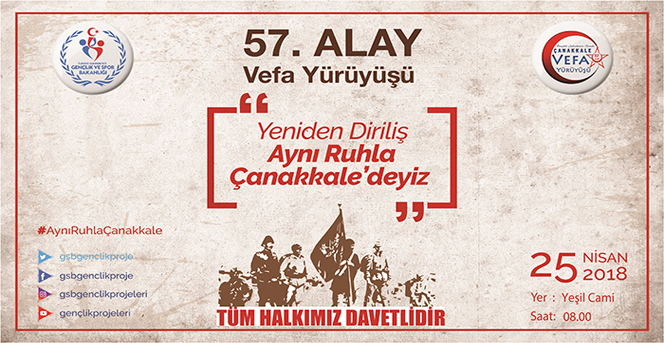 Çanakkale Zaferi'nde destanlaşan ve tarihe sığmayan kahramanlıklarıyla anılan 57. Piyade Alayı Şehitlerimizi anma programına tüm halkımız davetlidir.