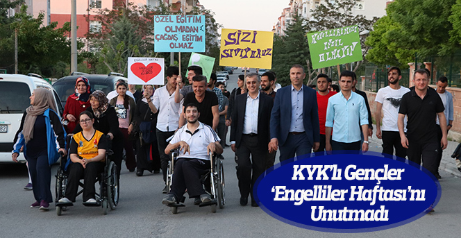 İftar öncesi gerçekleştirilen etkinliklerin ardından Kyk’lı gençler, ‘Engelliler Haftası’ etkinlikleri kapsamında düzenlendikleri farkındalık yürüyüşü ile engelli kardeşlerine hazırladıkları pankartlarla destek oldular. Kyk’lı öğrencilerin kendilerine yaptıkları bu anlamlı etkinlik karşısında mutluluklarını gizleyemeyen engelli bireyler ise genç öğrencilere bu anlamlı günde yanlarında oldukları için teşekkür ettiler.