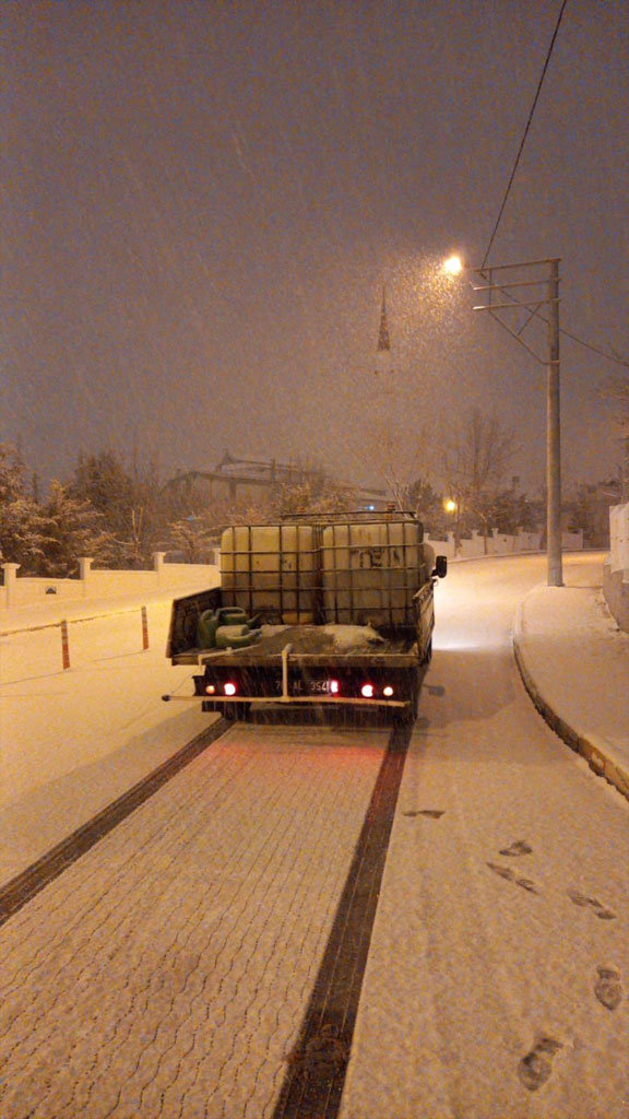 Karaman Belediyesi’nin kar temizleme araçları ve kar temizleme ekibi, kar yağışına anında müdahale etti. Gece geç saatlerde başlayan kar yağışıyla birlikte sahaya inen ekipler, yol ve kaldırımların açık kalmasını sağlamak için kent merkezi başta olmak üzere vatandaşların yoğun olarak kullandığı bölgelerde kar temizleme çalışması yaparak soğuk havanın etkisiyle oluşabilecek buzlanmaya karşı da önlem aldı. Özellikle ana arterler başta olmak üzere toplu ulaşım güzergâhları, hastane, kamu alanları gibi önemli yerlerde yollar; kar küreme araçlarıyla, kaldırımlar da; yaya ekipleri tarafından kardan temizleniyor.