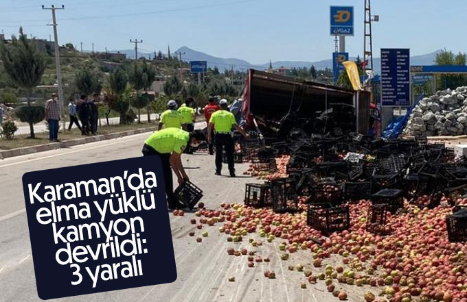 Karaman’ın Ermenek ilçesinde elma yüklü kamyonun devrilmesi sonucu meydana gelen trafik kazasında 3 kişi yaralandı.