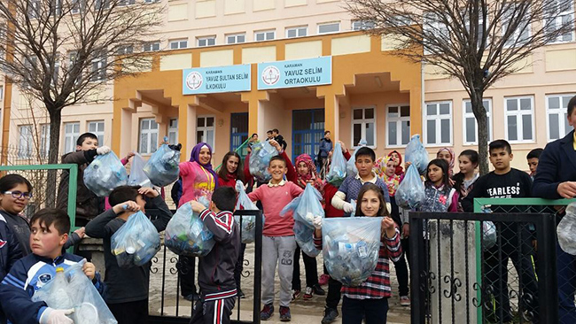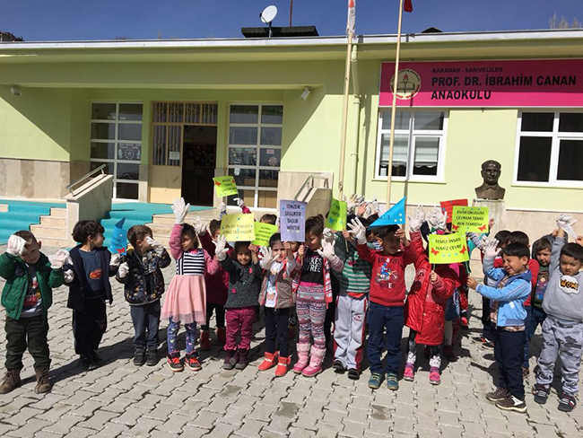 En iyi temizlik kirletmemektir, çevre miras değil, emanettir, temizlik imandan gelir, çevreni koru o da seni korusun, gibi dövizler hazırlayan öğrenciler büyüklerine mesaj vermeyi de ihmal etmedi. Yapılan temizlikte toplanan poşet, kağıt, pet şişe, plastik gibi ürünler geri dönüşüme kazandırıldı.