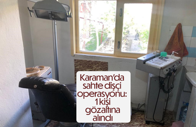 Edinilen bilgiye göre, Karaman Cumhuriyet Başsavcılığı koordinesinde İl Jandarma Komutanlığı tarafından yürütülen operasyonda diş hekimi olmadığı halde kaçak diş muayenehanesi açan R.A. düzenlenen operasyonla yakalandı. Kaçak diş muayenehanesinde yapılan aramada çok sayıda diş tedavi malzemesi ele geçirildi. Olayla ilgili olarak gözaltın alınan sahte dişçi R.A., ifadesi alınmak üzere jandarma karakoluna götürüldü. Olayla ilgili başlatılan soruşturmanın sürdüğü öğrenildi.