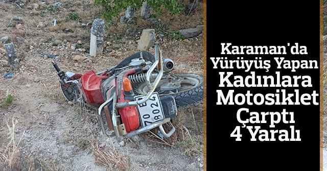 Karaman'ın Ermenek ilçesinde, motosikletin yürüyüş yapan kadınların arasına dalması sonucu 4 kişi yaralandı.