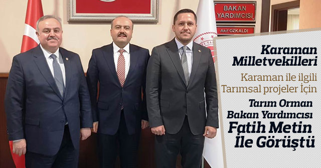 Ak parti Karaman Milletvekilleri Dr. Recep ŞEKER ve Av. Selman Oğuzhan ESER önceki gün Tarım Orman Bakan Yardımcısı Fatih Metin ile görüştü. Görüşmede Karaman ile ilgili Tarımsal projeler masaya yatırıldı. Milletvekilleri görüşmede Gödet barajı kapalı sulama sistemi ile birlikte, Ayrancı Barajının kapalı sulama sisteminin öneminden bahseden vekiller görüşme sonrasında buraların proje ihalelerinin en kısa zamanda yapılacağını duyurdular. Ayrıca mavi tünel projesinin aksayan yanlarını görüşen vekiller kanalın onarımı ve sanat yapılarının tamamlanması ile ilgili yaptıkları açıklamada; " Mavi Regülatörden çevrilen suyun Hotamış depolamasına aktarılmasını sağlayan 125 km uzunluğundaki kanal tamamlanmasıyla AHİ Kanalının tamamına 22.04.2018 tarihinde su verilmişti. Oluşan bazı sorunlar nedeniyle Kanalın ilk 33 km si işletmeye tam açılmış olup, kalan kısımların performans testleri devam etmektedir. Bu amaçla geçtiğimiz Eylül ayında kalan kısımlara da su verilmesi ile Karadağ bölgesi köylerimiz ve ilimizde büyük sevinç yaratmıştır. Şuan kanalın tamamında karşılaşılan veya oluşabilecek sorunların giderilmesi ve önlenmesi için Mavi Regülatörü ve Apa Hotamış İletim (AHİ) Kanalı Sanat Yapıları Tamamlama ve İyileştirilmesi 1.Kısım işinin ihale izni alınmış, önümüzdeki hafta ihalesi işlemleri EKAP’tan başlatılacaktır. Çiftçimizin refahı için yapılacak olan çalışmaların ihale bedeli yaklaşık 25 milyon TL dir. Allah devletimize zeval vermesin. Böylece mavi regülatörü besleyen barajlardaki depolamanın yeterli olmasıyla bu yıl eylül ayında Karadağ civarı köylerimiz suya kavuşacak, toplam uzunluğu 19 km olan ve 5,6 kilometresi açılan Hadimi tünelinin tamamlanmasıyla da suya doyacaktır. " açıklamasında bulundular.