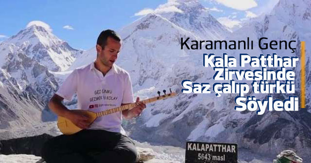 Karamanlı genç Anıl Ünlü, Nepal'in Everest bölgesinde bulunan 5 bin 643 metredeki Kala Patthar zirvesinde saz çalıp türkü söyledi.