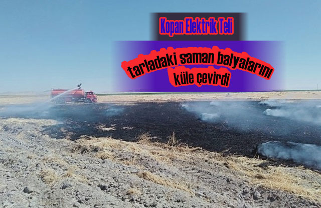 Karaman'da kopan elektrik telinin tarladaki saman balyalarının üzerine düşmesi sonucu çıkan yangında, 100 saman balyası zarar gördü.