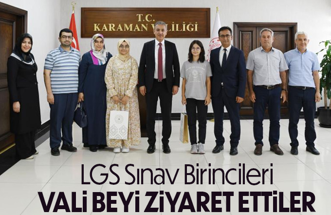 Karaman Valisi Tuncay Akkoyun, kendisini ziyarete gelen LGS Sınav birincilerini makamında ağırladı