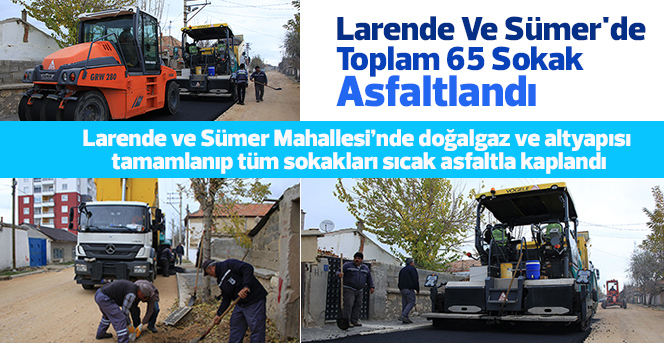 Yapılan planlama çerçevesinde sezon boyunca Larende ve Sümer Mahallesi’nde 65 Sokak ve 1 caddede sıcak asfalt çalışması gerçekleştirildiğini söyleyen Belediye Başkanı Ertuğrul Çalışkan: “Ekiplerimiz yaz boyunca şehir genelinde ve özellikle de Larende ile Sümer Mahallesi’nde yoğun bir çalışma yürüttü. Yaptığımız planlama çerçevesinde Larende ve Sümer Mahallesi’nde doğalgaz çalışması ve altyapısı tamamlanmış tüm cadde ve sokakları asfaltladık. Mevsim şartları çok ağırlaşmadan asfaltlama çalışmalarımızı tamamlayarak vatandaşlarımızın kış mevsiminde rahat bir ulaşım sağlamalarını amaçlıyoruz” dedi.