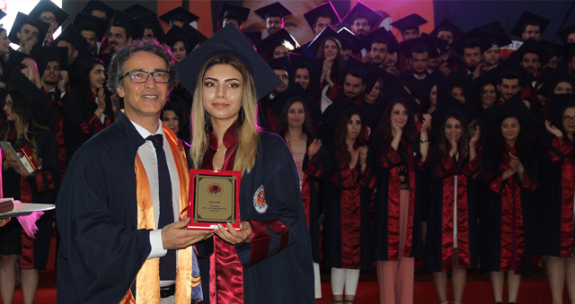 Fakültenin ilk mezun sayısının 2003-2004 eğitim-öğretim yılında 14, şimdi ise 918 olduğunu belirten Dekan Prof. Dr. Hakan Öztürk de bu yıl 158 genç hekimi meslek hayatına uğurlamanın gururunu yaşadıklarını ifade etti. Öztürk “Fakültemizde toplamda bin 361 öğrenciye mezuniyet öncesi tıp eğitimi, 245 araştırma görevlisine uzmanlık ve 30 uzman araştırma görevlisine yan dal uzmanlık eğitimleri verilmektedir. Bugün itibari ile büyük çoğunluğu profesörlerden oluşan 216 öğretim üyemiz bulunmaktadır. Kurumumuz yıllar önce başlatılan kalite çalışmaları ve alınan belgeler gereği sürekli olarak iç değerlendirme, çeşitli kurumlar tarafından da dış değerlendirme süreçleri ile değerlendirilmektedir. Sevgili öğrencilerimiz, ilerde umarım akademiyi seçerek aranızdan çok değerli bilim insanları da çıkar. Çünkü ülkemizin gelişmesi için iyi yetişmiş bilim insanına çok ihtiyaç var. Çevrenizdeki insanlara karşı içinizde daima sevgi ve nezaket besleyin. Hastalarınıza iyi davranın. Gülümsemenin gücünü kullanın. Tedavi için yalnız tıbbi bilgi yetmez. Tedavinin sırrı hastaya saygıyla başlar, sevgiyle tamamlanır" diye konuştu.