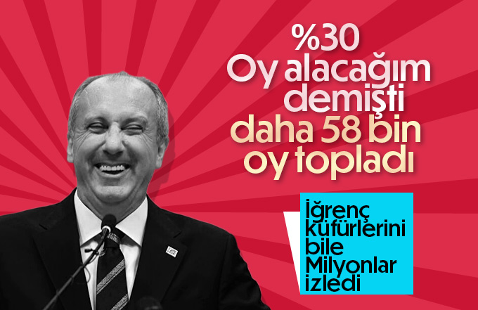 Partisinin %30 oy alarak ikinci tura kalacağını ve ikinci turda da %60 oy alarak Cumhurbaşkanı seçileceğini iddia eden Muharrem İnce, İmza kampanyasının üçüncü gününde 58,958 oy alması tabanda şaşkınlıkla karşılandı.