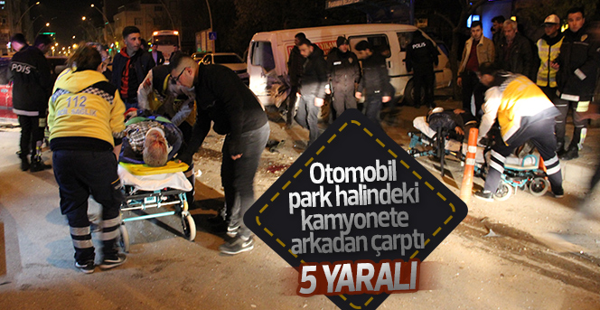 Karaman'da otomobilin park halindeki kamyonete arkadan çarpması sonucu 5 kişi yaralandı.