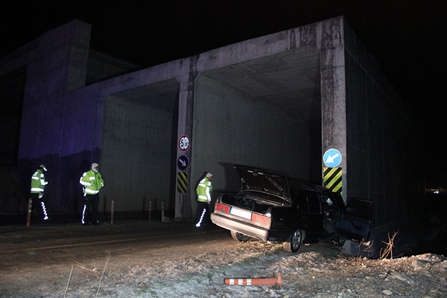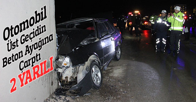 Karaman'da bir otomobilin yapımı devam eden üst geçidin beton ayağına çarpması sonucu 2 kişi karalandı.