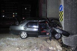 Otomobil üst geçidin beton ayağına çarptı: 2 yaralı