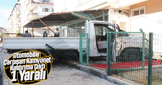 Otomobille çarpışan kamyonet kaldırıma çıktı: 1 yaralı