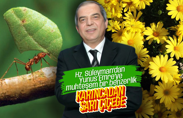 Karınca ile Sarı Çiçek arasındaki benzerlik ne ise Hz. Süleyman ile Karamanlı Yunus Emre arasındaki benzerlik ve özdeşlik aynıdır. Karınca ile Sarı Çiçek kardeştir. Hz. Süleyman ile Yunus da kardeştir. Karıncadan Sarı Çiçeğe, Süleyman’dan Yunus’a her yaratılmış, Allah’ın bu dünyaya birer armağanıdır. Her şey, bir diğeri için armağan. Birimiz bir başkasına armağan… Her birimiz, her birimize armağan. Vahdeti vücudun tezahürü bu olsa gerek.