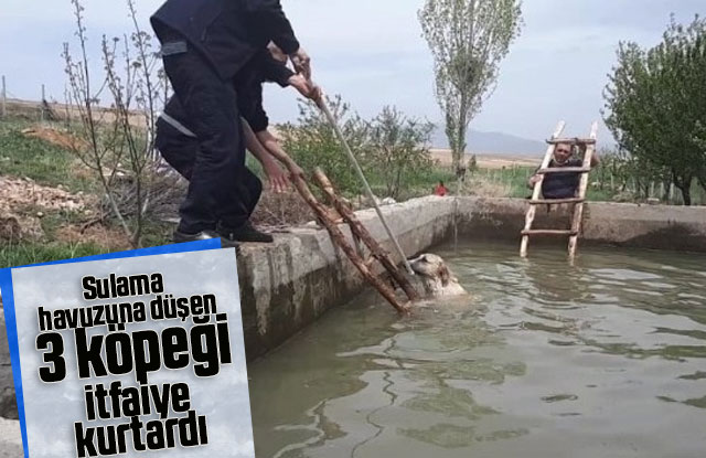 Sulama havuzuna düşen 3 köpeği itfaiye kurtardı