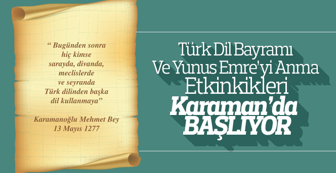 Kutlamalar 11 Mayıs Cumartesi gecesi düzenlenecek olan “Türkçe Aşkı Vatan Aşkı Yürüyüşü” ve fener alayı ile başlayacak. Saat 22.30’da Kemal Kaynaş Stadyumu önünden başlayacak yürüyüş Aktekke 15 Temmuz Demokrasi Meydanına kadar devam edecek ve meydanda vatandaşlara Karaman Belediyesi tarafından sahur sofrası kurulacak.