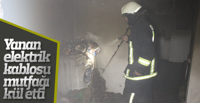 Olay, akşam saatlerinde Zembilli Ali Efendi Mahallesi 768 Sokak’ta bulunan 2 katlı evin birinci katında meydana geldi. Alınan bilgiye göre, Nebi T.’ye ait olduğu öğrenilen evin mutfağından dumanların yükseldiğini gören vatandaşlar durumu itfaiye ve polise haber verdi. Yangın yerine tedbir amaçlı ambulans ile doğalgaz ekibi de çağrıldı. Ekipler, ilk olarak üst katta oturan yaşlı kadını dumandan etkilenmemesi için evinden dışarıya çıkardı. Oksijen tüpleri ile evin içine giren itfaiye erleri yangını kısa sürede söndürdü. Yangının çıktığı mutfaktaki kanepe, buzdolabı, çamaşır makinesi ile diğer eşyalar yanarak kullanılamaz hale geldi. İtfaiye yaptığı ön incelemede yangının mutfaktaki elektrik kablosunun ısınarak yanması sonucu çıktığını tespit etti.