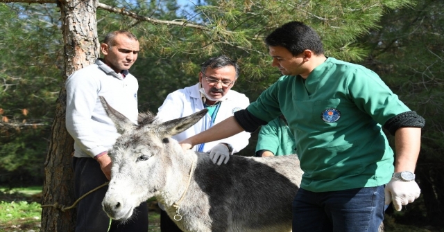 Anamur ilçesinde bir vatandaşın gebe bir eşeğin ölmek üzere olduğu ihbarı üzerine harekete geçen ekipler, ilgili birimlerle sağlanan koordinasyon sonrası özel nakil aracı ile yola çıktı. Yaklaşık 1 saat süren arama çalışmasının ardından aç ve soğuktan donmak üzereyken bulunan eşek, battaniyelere sarılarak Mersin’e nakledildi. Burada Tarsus Hayvanat Bahçesi’nde ilk muayenesi yapılan eşekte gebeliğe rastlanmazken, yıllarca yük arabası taşımaktan kaynaklı boyunda ödem ve sapma ile sol gözünde görme kaybı tespit edildi. Yapılan tetkikler neticesinde artık yük taşıyamaz hale geldiği için sahibi tarafından ölüme terk edildiği anlaşılan eşeğe, Büyükşehir Belediyesi Veteriner Hizmetleri Dairesi Başkanlığı veteriner hekimleri tarafından ‘Menekşe’ ismi verildi.