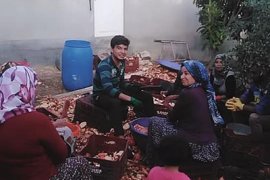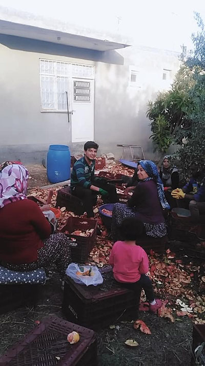 Nar ekşisi yapımının oldukça zahmetli olduğunu, fakat köylerde bu konuda herkesin birbirine yardımcı olduğunu söyleyen Muğlu, üreticilerimiz, “Önce bahçelerden ekşi narları topluyor, daha sonra topladıkları narları bir gün bekletiyorlar. Ertesi gün yakınları ve komşuları ile hep birlikte, el birliği yaparak narları ortadan ayırıyor ve taneleme işlemine geçiyorlar. Küçük boyuttaki yaş kesilmiş ağaç sopalarla, ortadan ikiye ayrılmış olan narların üzerine vurarak nar tanelerini büyükçe bir leğenin içine boşaltıyorlar. Taneleme işlemi bittikten bir gün sonra ise sıkma işlemini gerçekleştiriyorlar. Nar tanelerini bir çuvalın içine koyarak daha sonra içi nar tanesi dolu çuvalı, kurna ya da tekne olarak bilinen sıkma işinde kullandıkları aletin içine koyuyorlar. Son olarak çizmeyi giyerek kurnanın içindeki çuvalın üzerine çıkıyor ve nar suyunu çıkartmaya başlıyorlar.